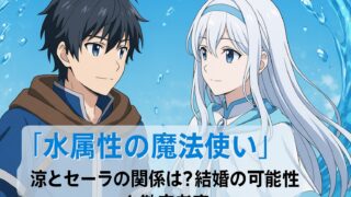 水属性の魔法使い 「水属性の魔法使い」セーラは結婚ヒロイン?涼との関係と未来を徹底考察 2025年夏アニメとして放送がスタートした『水属性の魔法使い』。異世界で水魔法を極めた青年・涼の冒険を描く本作は、王道のファンタジーでありながら、心を揺さぶる人間関係が大きな魅力です。その中でも特にファンの注目を集めているのが、ヒロイン・セ... 2025.09.14 水属性の魔法使い